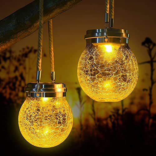 Solar Lights for Outside Hanging Solar Crackle Glass Ball for Patio Lights,Landscape Lighting,Yard Decorations Outdoor,Yard Lights,Backyard Lights,Outdoor Lighting