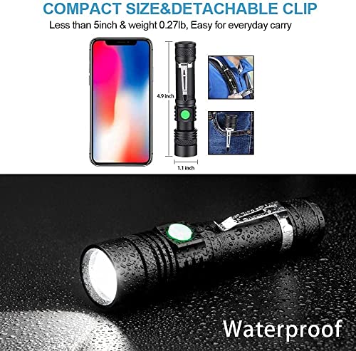 Comphygo Led Hand Rechargeable Flashlights Lights S Rechargeable Aluminium Alloy,High Lumens With 5 Modes,Waterproof Focus Zoomable Flash Light, camping essentials good add to your camping accessories