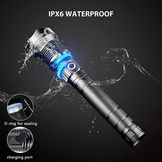 ComphyGo Rechargeable Flashlights High 150000 Lumens Lumens, Super Bright LED Tactial Flash Lights for Camping, Hiking,- Waterproof IPX6, 7 Light Modes Zoomable Flash Light - Camping Essentials